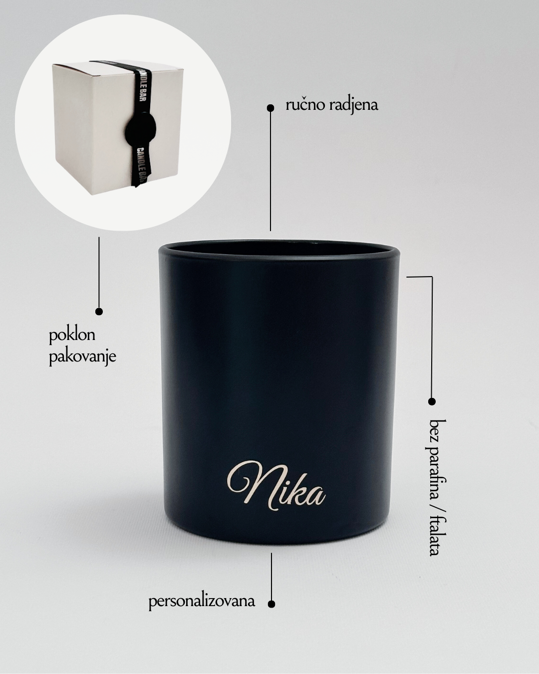 Personalizovana mirisna sveća prenosi poruku da je dar pažljivo odabran i posvećen upravo osobi koja ga prima.