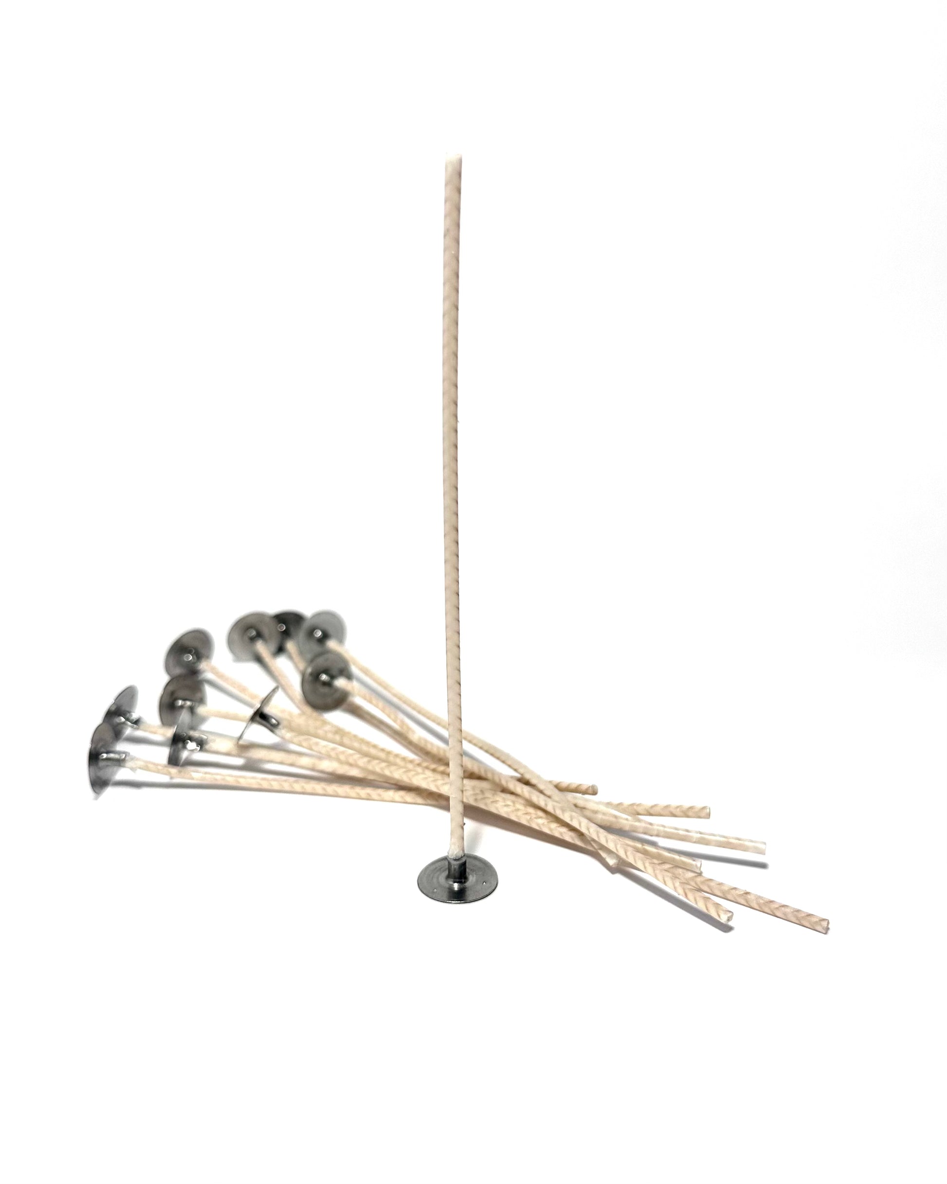 - Fitilji su dužine 120mm, voskirani i pričvršćeni na metalne držače od 15mm za maksimalnu krutost i lako izlivanje.