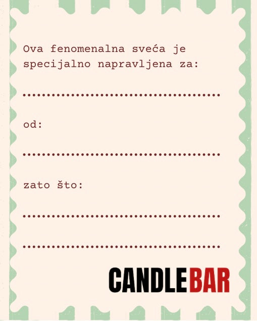 U prazna polja unesite informacije koje želite da budu na etiketi vaše sveće. Ovo može uključivati, ime, poruku ili posebnu priliku.